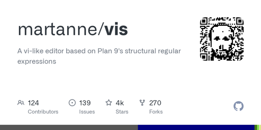 HaraldvonBlauzahn@feddit.org · edit-22 天前GitHub - martanne/vis: A vi-like editor based on Plan 9's structural regular expressionsplus-squaregithub.comexternal-linkmessage-square9linkfedilinkarrow-up139arrow-down13