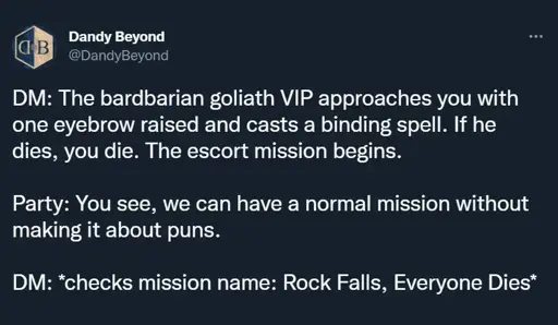 azrendelmare@ttrpg.network · 10 days agoAlone, it is a fool's errand!ttrpg.networkimagemessage-square6linkfedilinkarrow-up1104arrow-down11