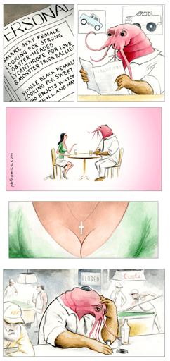 Is the joke that being Christian is a bigger turn off than being lobsterheaded?