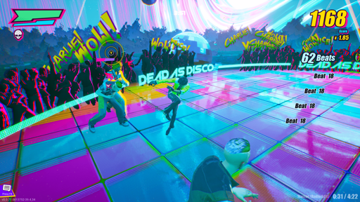 Overall, there’s not much to say about this game but it is fun. There’s one level in development and there’s an infinite Disco. The story seems kind of like a “getting the band back together” story about Charlie Disco (the player character) who came back to life. The story kind of gives me Max Payne 1 vibes too. Infinite Disco lets you import your own songs too, but i couldnt get it to sync right. It’s a free demo so i’d highly advise picking it up. It’s a lot of fun!