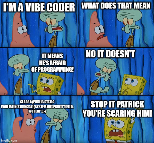 arrow-up1442arrow-down1image"Vibe coders"lemmy.mljankforlife@lemmy.ml to Programmer Humor@programming.dev · 4 months agomessage-square16linkfedilinkfile-text