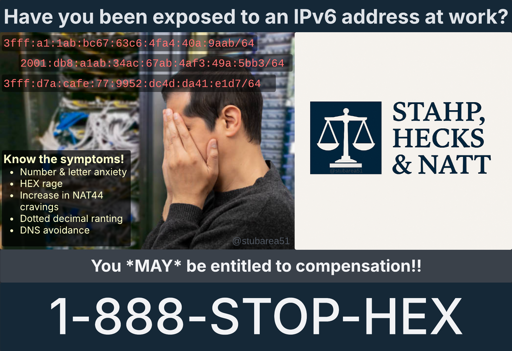 qaz@lemmy.world to Programmer Humor@programming.devEnglish · 18 days agoHave you been exposed to an IPv6 address at work?lemmy.worldimagemessage-square41linkfedilinkarrow-up1401arrow-down16
