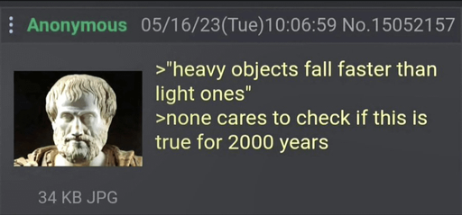 Aristotle said so much dumb shit, like he said that women have less teeth and never bothered to check