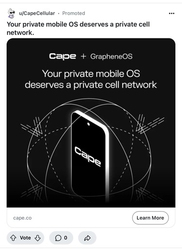 So, they have their own phone that is for high risk individuals and is not available to the general public. Then, separately they have their own mobile network that you can use with any regular phone and they sell Pixels on their website (for $50, you can have them pre-load GraphineOS). The AD i posted is for their cellular network, which is not related to their own first-party device.