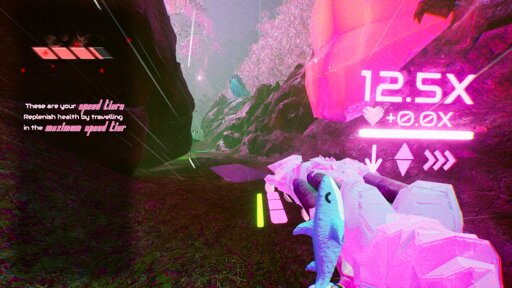 On top of the fun fast paced gameplay it has some fun mechanics that tie into the high speed system. One of them is Tommy. He’s a digital pet who needs to be fed love by killing enemies. If his food timer hits timers he goes boom. It’s like a ticking time bomb to kill as many enemies as possible.