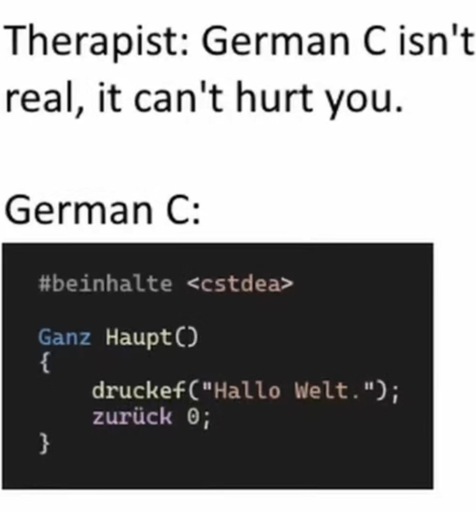 should be capitalised, but I’m already overstepping my bounds considering I know very little German.I wouldn’t want to say which should take precedence between C’s preference for all-lowercase keywords and functions and German’s Rule to capitalise all Nouns.