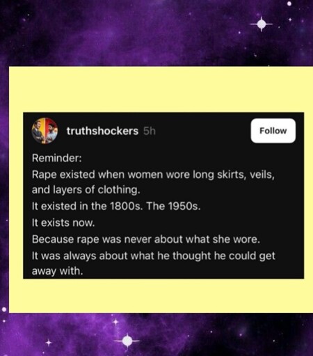 Rape is and always was about power, I’m always instantly wary of anyone who insinuates stuff like “maybe she shouldn’t have been wearing that” or “what was she wearing?”