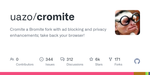arrow-up1100arrow-down1external-linkCromite a Bromite fork with ad blocking and privacy enhancementsgithub.commistermodal@lemmy.ml to Privacy@lemmy.ml · 9 days agomessage-square41linkfedilinkfile-text