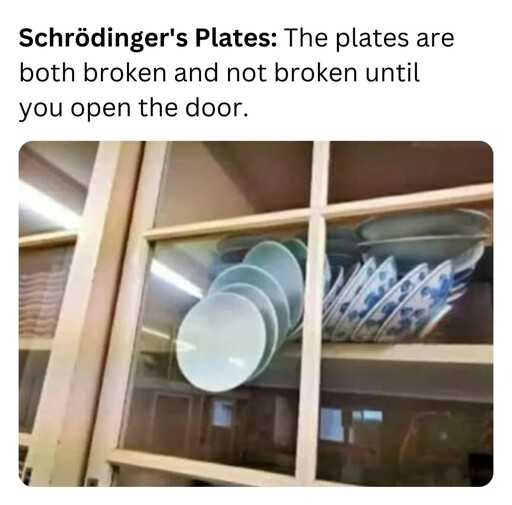 If you open the door, they break, if they break, they cannot be used, therefore you should NOT open the door. However, if you don’t open the door, you cannot USE the plates for their intended purpose, effectively rendering them “broken.”