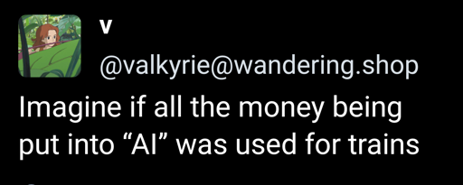 io@piefed.blahaj.zone to Microblog Memes@lemmy.worldEnglish · 1 month agoTrains 🤧piefed.cdn.blahaj.zoneimagemessage-square118linkfedilinkarrow-up11.3Karrow-down19file-text