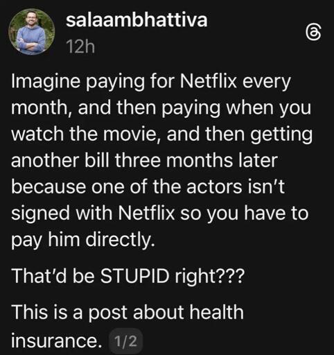 The OP basically is saying: Monthly health insurance premiums == monthly subscription fees.
