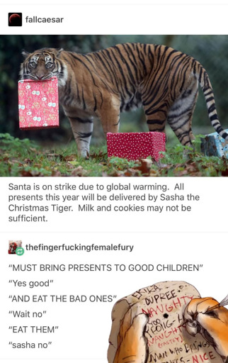 I was just thinking: If Sasha could just eat the billionaires I’m ok with not getting presents this year.