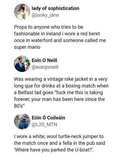 arrow-up1926arrow-down1imageIrish fashionslrpnk.netTrack_Shovel@slrpnk.net to Microblog Memes@lemmy.worldEnglish · 1 day agomessage-square48linkfedilink