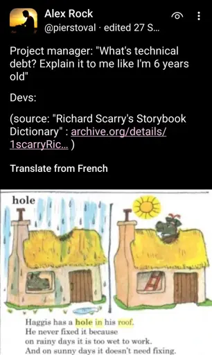 not_IO@lemmy.blahaj.zone to Programmer Humor@programming.devEnglish · 15 days agotechnical debtlemmy.blahaj.zoneimagemessage-square86linkfedilinkarrow-up11.58Karrow-down110file-text