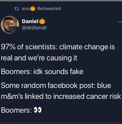 I dunno, most boomers I know, including my parents, do not really care much and think it’s just the next generation’s problem and, just like themselves, every generation has their own problems 🤷‍♀️