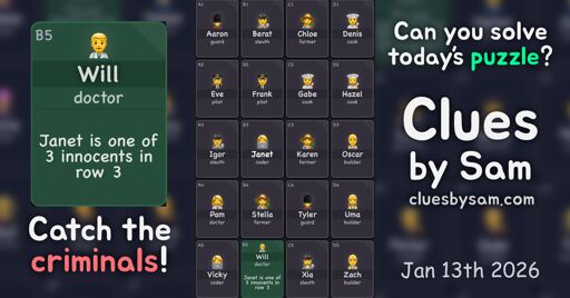 SorryImLate@piefed.social to dailygames@lemmy.zipEnglish · 11 days agoClues by Sam 2026-01-11cluesbysam.comexternal-linkmessage-square5linkfedilinkarrow-up112arrow-down10file-textcross-posted to: dailygames@lemmy.zipdailygames@lemmy.zipdailygames@lemmy.zipdailygames@lemmy.zipdailygames@lemmy.zipdailygames@lemmy.zipdailygames@lemmy.zipdailygames@lemmy.zipdailygames@lemmy.zipdailygames@lemmy.zip