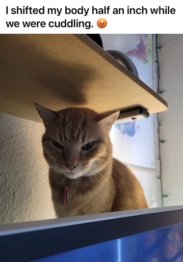 And my cat goes passive resistance limp no matter what if I need to get up 🙃