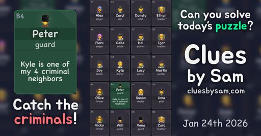#CluesBySam - Jan 21st 2026 (Medium) Less than 14 minutes 🟩🟩🟩🟩 🟩🟩🟩🟩 🟩🟩🟩🟩 🟡🟩🟩🟩 🟩🟩🟩🟩I solved the daily #CluesBySam, Jan 21st 2026 (Medium), in 04:35 🟩🟩🟩🟩 🟩🟩🟩🟩 🟩🟩🟩🟩 🟩🟩🟩🟩 🟩🟩🟩🟩 https://cluesbysam.com/#CluesBySam - Jan 21st 2026 (Medium) 04:18 🟩🟩🟩🟩 🟩🟩🟩🟩 🟩🟩🟩🟩 🟩🟩🟩🟩 🟩🟩🟩🟩