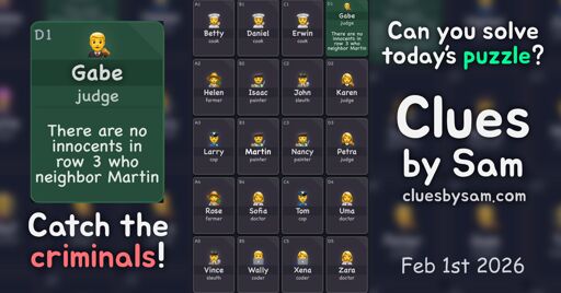 arrow-up14arrow-down1external-linkClues by Sam 2026-01-30cluesbysam.comSorryImLate@piefed.social to dailygames@lemmy.zipEnglish · 2 days agomessage-square5linkfedilinkfile-textcross-posted to: dailygames@lemmy.zipdailygames@lemmy.zipdailygames@lemmy.zipdailygames@lemmy.zipdailygames@lemmy.zipdailygames@lemmy.zipdailygames@lemmy.zipdailygames@lemmy.zipdailygames@lemmy.zip