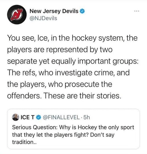 That’s why the punishment for fighting is relatively small. If the league gave severe punishments for fighting, players would be forced to stop fighting.