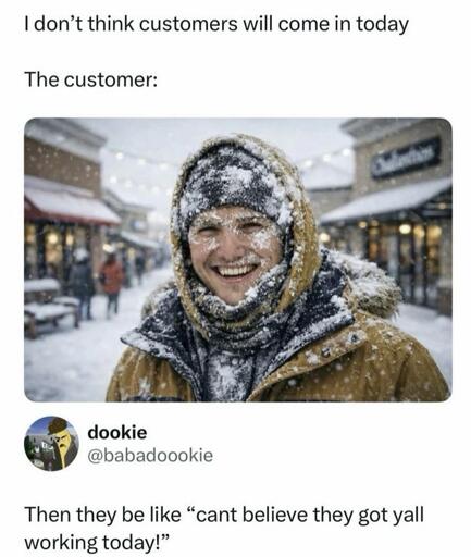 If that person wasn’t there, you’d still be open though. From what I have seen of people going in during a holiday, they are all overworked with no time off and cannot get what they need beforehand, leading to them being essentially forced to.