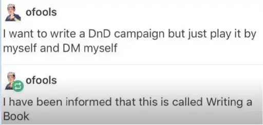 Writing a book means planning out plot and character arcs and going back to edit and such. Solo RPGs are an entirely different beast. They can inspire books, but they are not an authorial exercise.