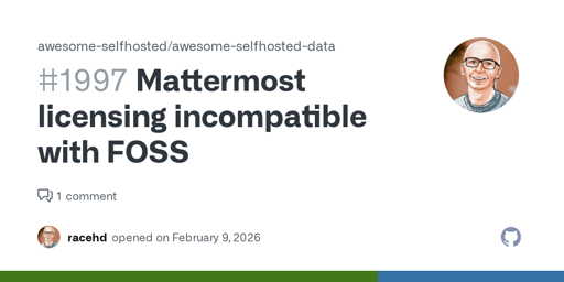 vegetaaaaaaa@lemmy.world to Selfhosted@lemmy.worldEnglish · 17 days agoMattermost is no longer Open-Sourcegithub.comexternal-linkmessage-square30linkfedilinkarrow-up1260arrow-down18