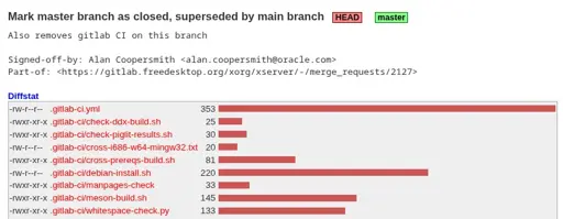 This Valentine’s Day there is a lot of red on the screen for the X.Org Server with the code delta as a result of renaming of their main Git development branch and in the process selectively dropping questionable patches to the prior “master” codebase.