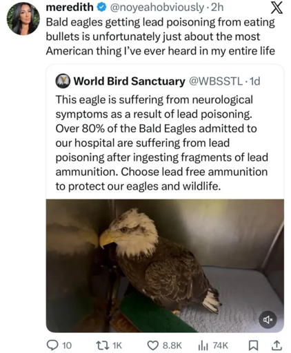 minus-squarearrow74@lemmy.ziplinkfedilinkEnglisharrow-up11arrow-down1·4 days agoSo do hunting licenses in the US. Wildlife enforcement has some of the most authority in the state. The issue is the states allow inherently unsafe munitions to be used. If they changed hunters in the US would comply