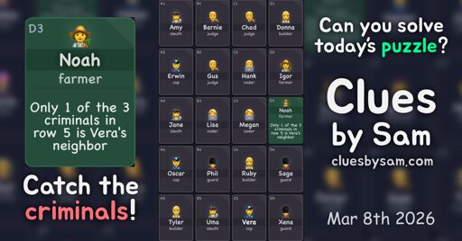 I solved the daily #CluesBySam, Mar 6th 2026 (Hard), in less than 15 minutes