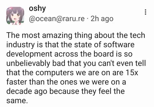 arrow-up11.74Karrow-down1imagemight be a form of Jevons Paradoxlemmy.blahaj.zonenot_IO@lemmy.blahaj.zone to Programmer Humor@programming.devEnglish · 8 days agomessage-square289linkfedilinkfile-text