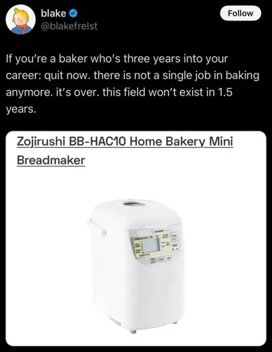 I had a bread maker and it drove me crazy. It was Schrodinger’s bread box. Put in ingredients, wait, and at the end it’s either oddly shaped bread or a brick. Seemingly absolutely randomly. I hated it with my whole heart and gave it to my neighbor, who could not cook so 75% or whatever was a good enough success rate for her.
