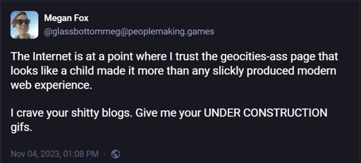 Seems to be mostly blogs, not old school Geocities-style sites.