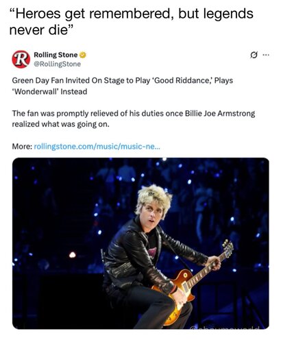 54·5 months agoThe band Green Day invited a fan up on stage to play one of their songs, but he played the song Wonderwall instead as a joke.