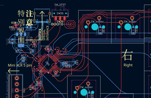 The spirally tracks/flourishes I added simply because of looks. No intentional RF stuff going on here. I have the track smoothing plugin installed and felt bad about not using it. Besides, the switch goes directly to ground here so having a bit of “cable salad” probably won’t do any harm, I could even draw a little Tux on the board if I were so inclined…